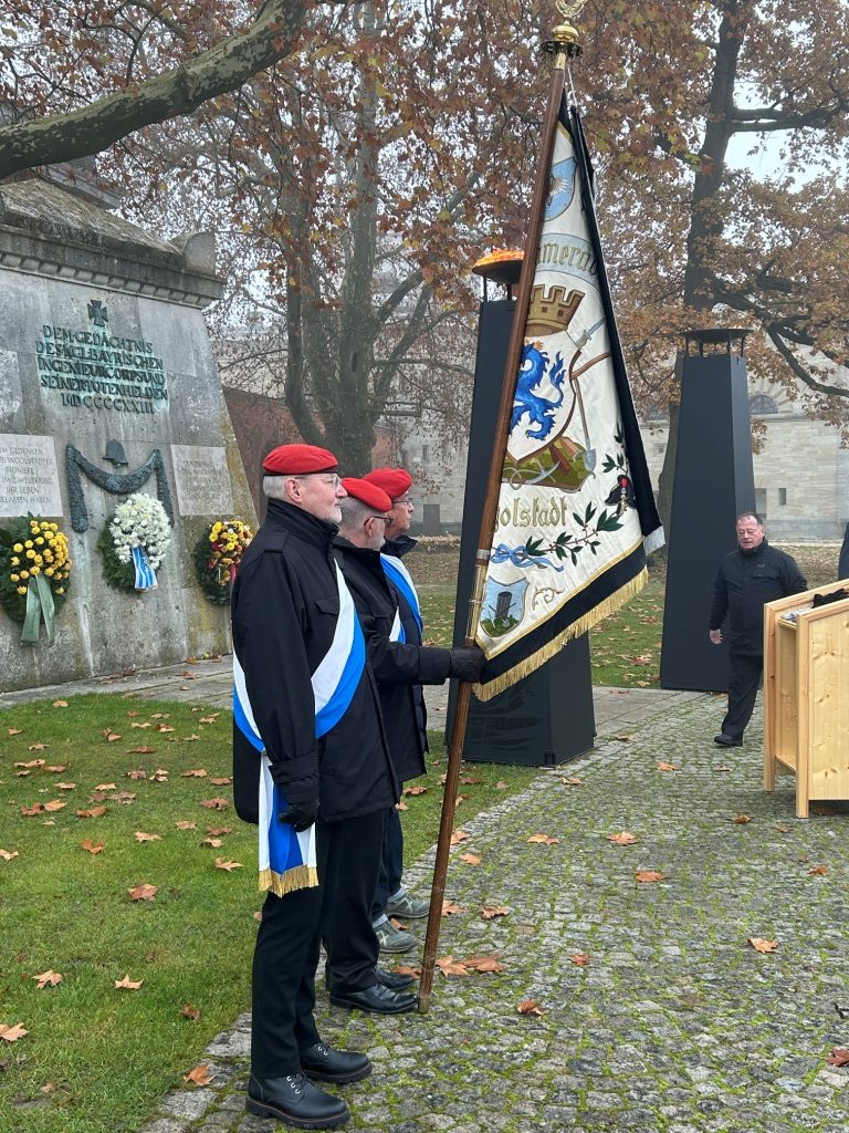 Neben unserem 1. Vorsitzenden gaben der Oberbürgermeister der Stadt Ingolstadt, Herr Dr. Michael Kern und der Standortälteste des Standortes Ingolstadt, Herr Oberst Jochen Gumprich sowie der Ehrenzug, gestellt durch die Fachschule des Heeres für Bautechnik, der Gedenkfeier ihren würdigen Rahmen.
