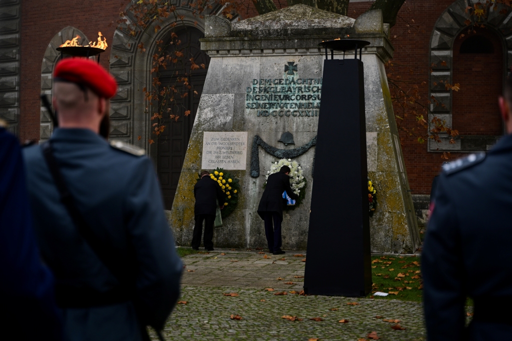 Wir trauern um die Opfer der Kriege und Bürgerkriege unserer Tage, um die Opfer von Terrorismus und politischer Verfolgung, um die Bundeswehrsoldaten und anderen Einsatzkräfte, die im Auslandseinsatz ihr Leben verloren. Wir trauern insbesondere um 2 Ingolstädter Pioniere, Stabsunteroffizier Josef Kronawitter und Hauptfeldwebel Marius Dubnicki vom GebPiBtl 8, die am 15. April 2010 bei BAGLAN in Afghanistan gefallen sind.