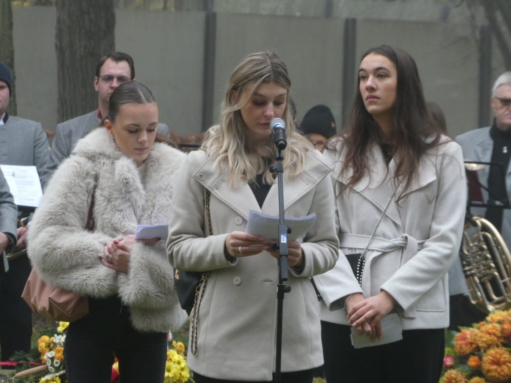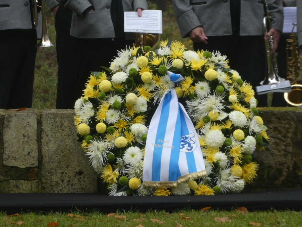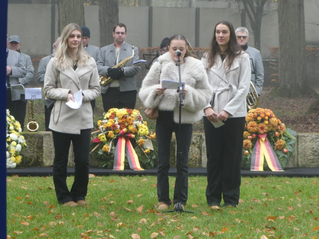 Der erste Redner war Pfarrer Clemens Hergenröder. Er zitierte den Friedensnobelpreisträger Albert Schweitzer sehr treffend zu diesem Anlass: „Die Soldatengräber sind die großen Prediger des Friedens.“. An Ereignisse aus Ingolstadt aus dem II. Weltkrieg erinnerten 3 Schülerinnen des „Katherl“ mit ihren Lesungen. Oberbürgermeister Dr. Michael Kern erwähnte in seiner Anspreche weitere Beispiele, wie z.B. die Bombardierung der Augustinerkirche, in der mehr als 70 Schutzsuchende ums Leben kamen, darunter ausgerechnet auch viele vor der Roten Armee aus Pommern Geflüchtete.